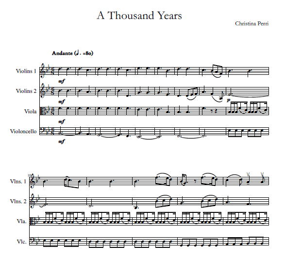 “A Thousand Years” by Christina Perri arranged for string quartet