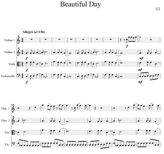 “Beautiful Day” by U2 arranged for string quartet