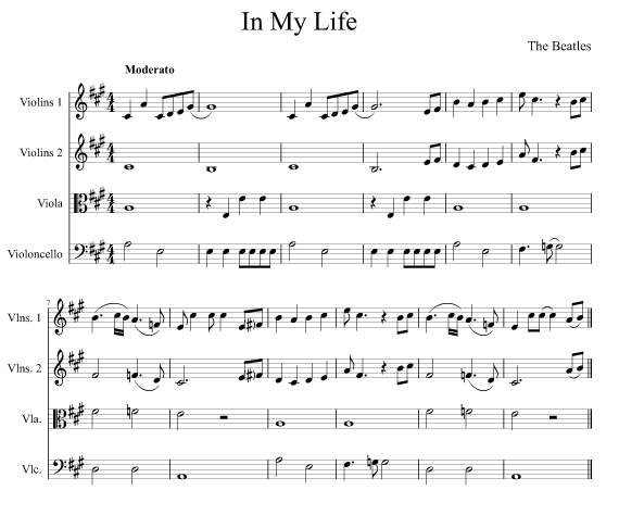 “In My Life” by The Beatles arranged for string quartet